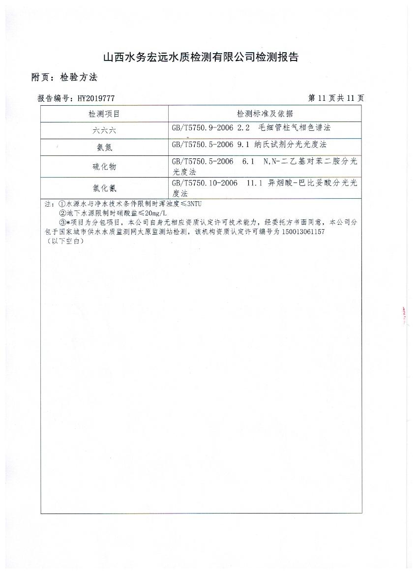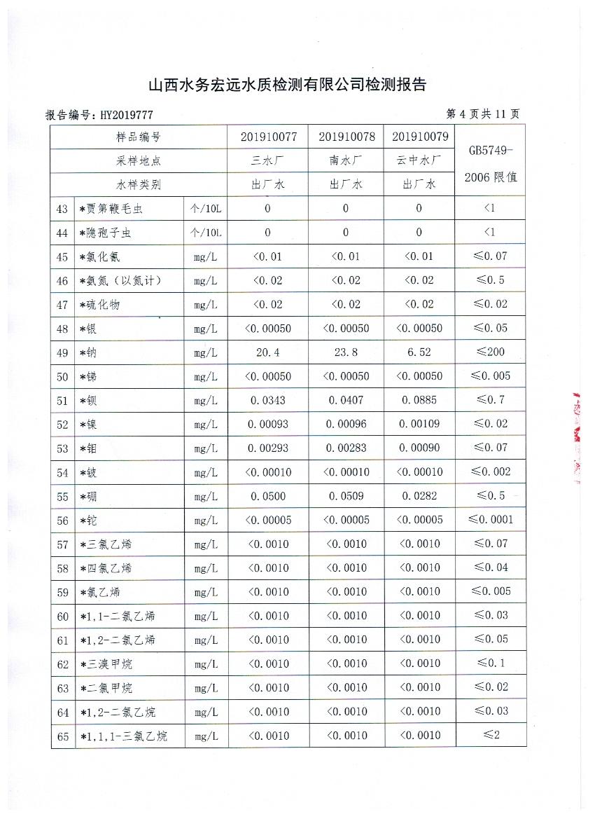 2019年忻州城區(qū)公共供水南水廠、三水廠、云中水廠出廠水106項水質(zhì)全分析